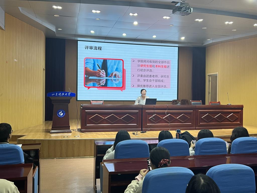 11月17日下午,国产视频 在J6-556成功举办第十四届“挑战杯”山东省大学生创业计划竞赛动员大会,本次动员会旨在帮助同学们深入了解“挑战杯”竞赛,激发创新创业热情,提升实践能力,大会由辅导员老师韩冰主持。动员会上,韩冰老师从参赛对象要求、比赛规则、参赛形式、提交材料要求和表彰奖励五个方面详细介绍了比赛内容。重点结合往届优秀参赛队伍的PPT和项目计划书,为同学们答疑解惑。同学们认真听讲,积极互动,对“挑战杯...