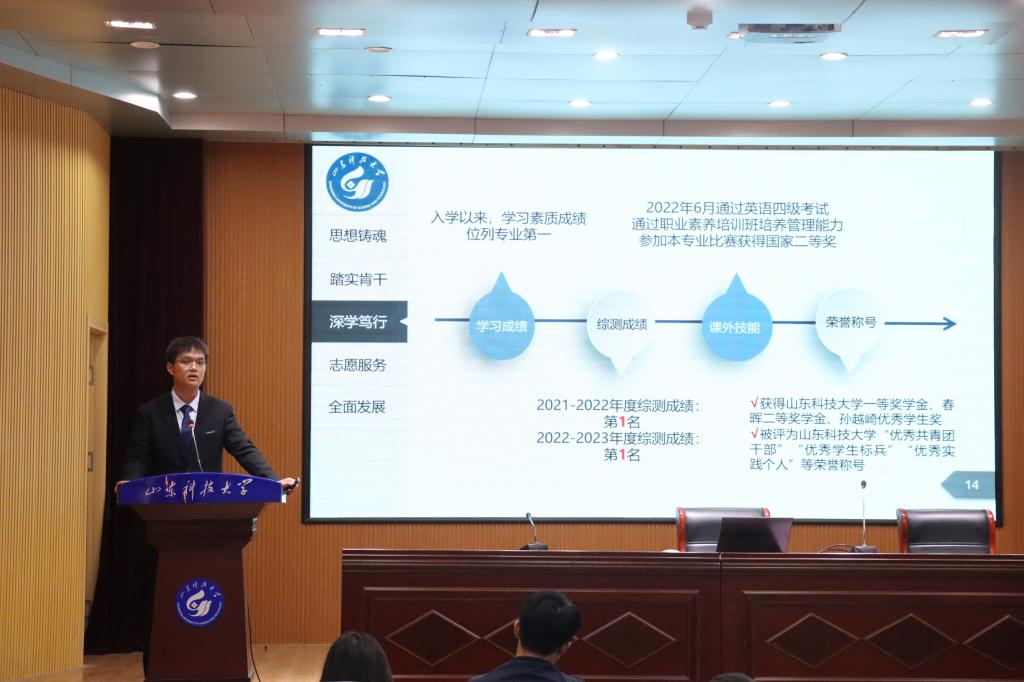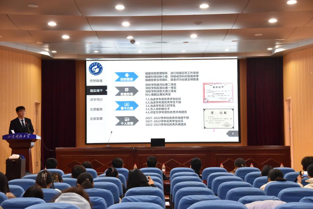 9月21日下午,国产视频 在J6-434报告厅进行2022-2023学年国家奖学金答辩会。国产视频 党委副书记兼副院长吴昊、学工办主任(团委书记)孙金香及全体辅导员老师参会。经过个人申请、国产视频 审核,共有8位国奖候选人进入答辩环节。答辩伊始,主持人介绍了答辩流程及注意事项。随后,各位候选人依次上台进行答辩,他们分别从思想、学习、生活、科技创新、社会实践等方面汇报自己前一学年的情况,展现了测绘学子勤奋学习、敢于创新的精神面貌...