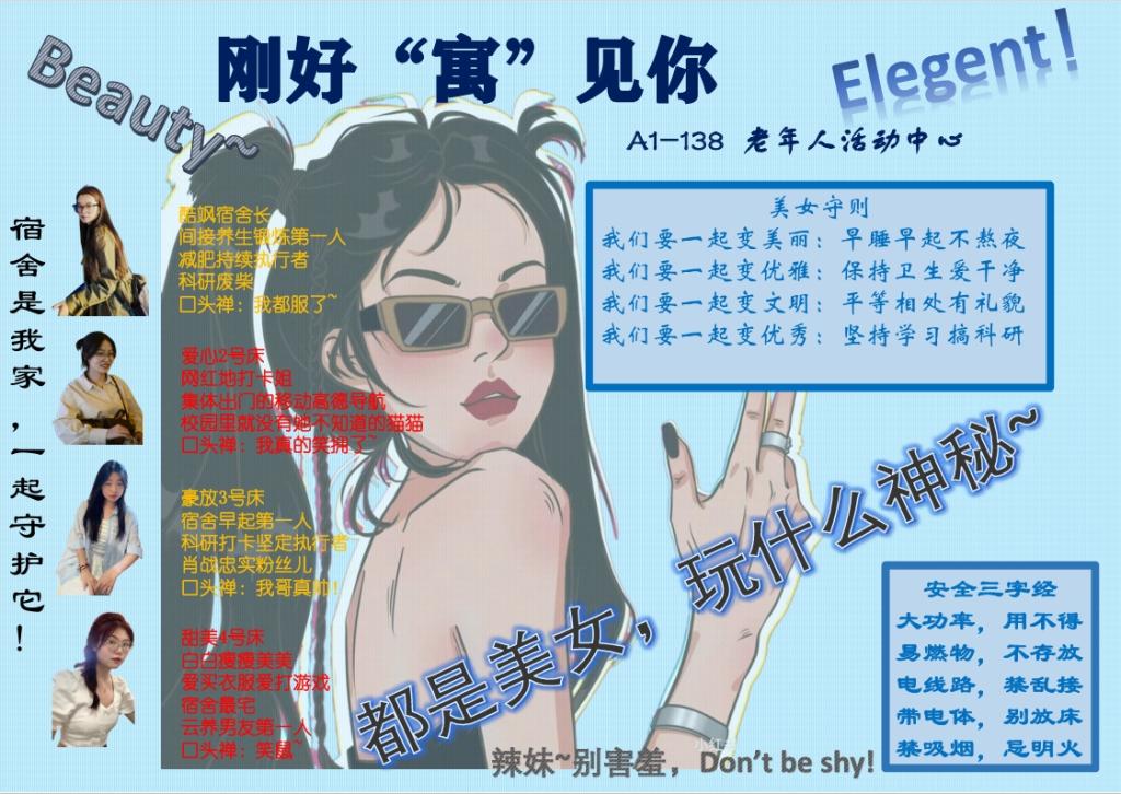 为积极响应学校开展2024年学生安全文明“大学习、大排查、大整治、大提升”活动,国产视频 研究生会生活权益部举办“‘寝’投‘谊’合,相约相守”为主题的宿舍安全文明公约设计活动。此次活动吸引了48间宿舍220余人的踊跃参与,共收到48份精美的宿舍安全文明公约设计作品。参与者们通过为各自宿舍设计并绘制宿舍公约,充分展现了他们卓越的团队协作、自我管理和自我约束的能力。这些作品不仅生动温馨,还具备启发性和实践价值。...