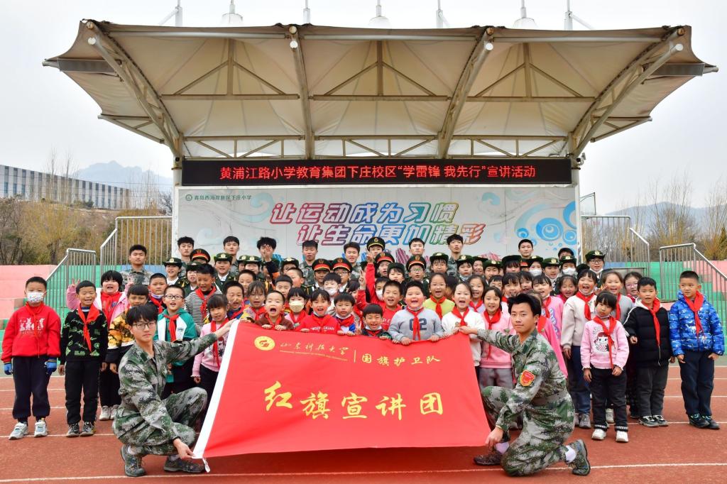 为加强爱国主义教育,弘扬爱国主义精神,4月8日,国旗护卫队前往港头小学共开展“大手牵小手”国防教育进校园活动。上午9时30分,国旗护卫队护卫着鲜艳的五星红旗,昂首挺胸,迈着整齐有力的步伐走向升旗台。全校师生肃立,响亮的国歌声飘荡在校园,鲜艳的五星红旗冉冉升起,大家的脸上洋溢出自豪与骄傲,浓浓的爱国情激荡在广大师生心间。升旗仪式后,国旗护卫队进行了举枪礼和队列动作表演。随后,国旗护卫队红旗宣讲团成员丁...