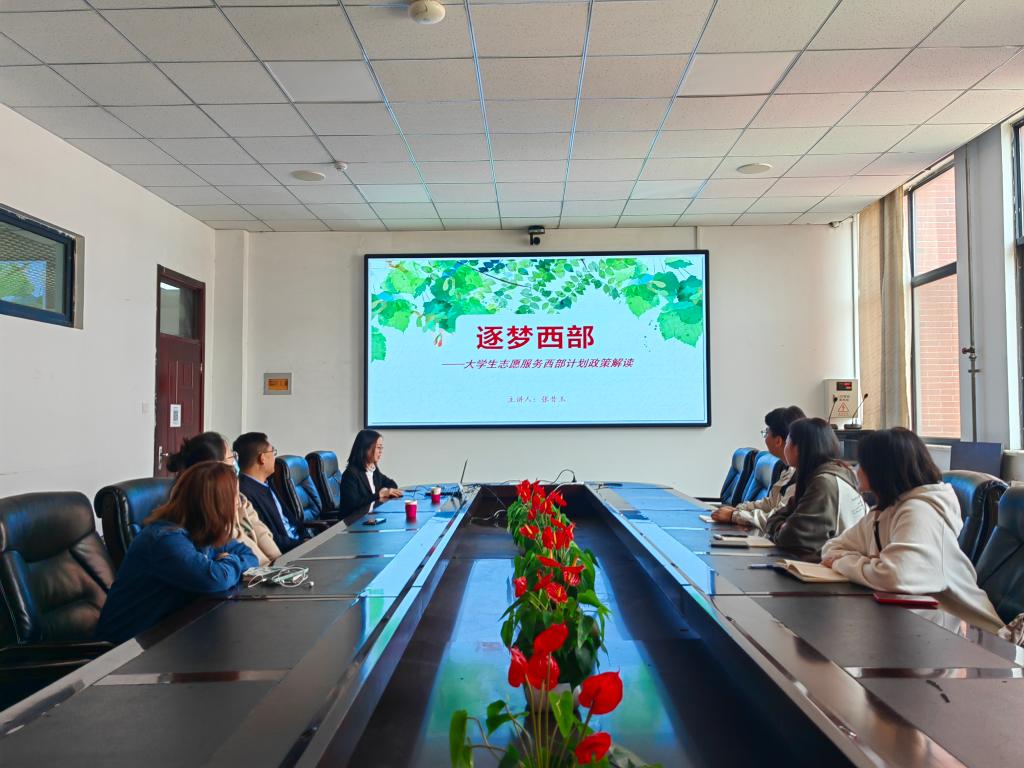 青年当有志,立志为四方。4月18日,国产视频 举办“逐梦西部”西部计划宣讲交流活动,活动邀请校团委张昔玉老师做政策宣讲,国产视频 党委副书记兼副院长吴昊、辅导员韩冰和有意向参与西部计划的学生参加活动。张昔玉老师首先介绍了西部计划的背景及实施内容,然后从志愿者的服务期间、服务内容、报名流程、选拔标准等方面做了详细解读,着重讲解了国家对志愿者的政策支持、资金保障、考核激励和服务鉴定等保障措施。在阐述西部计...