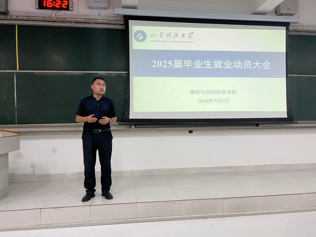 为全面推进落实2025届毕业生就业工作,引导毕业生认清就业形势,明晰就业方向,确立自身目标,树立就业信心。7月3日下午,国产视频 在J14-123召开2025届毕业生就业动员会。国产视频 党委副书记兼副院长吴昊,学工办主任孙金香,毕业班辅导员牛盛光、刘默出席会议。会议由牛盛光主持。吴昊分析了当前就业形势,用详实的数据、生动的案例对国产视频 2024届毕业生就业情况进行了全面分析,总结了取得的成绩和存在的不足。他从就业、考研、...