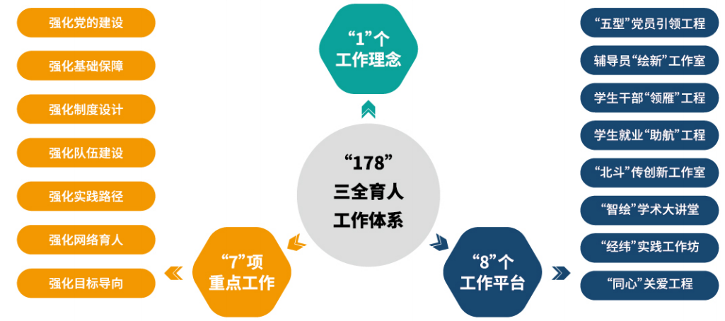 国产视频 学生工作办公室现有辅导员10人(含2名优选辅导员),始终坚持立德树人根本任务,实施以精神文化、制度文化、行为文化、环境文化为主要内容的“经纬蓝图”文化工程,构筑传统文化长廊、学科发展历史长廊、院士寄语长廊,感悟测绘文化底蕴、铭记大国工匠重托厚望,同时构建了“178(一起吧)”三全育人工作体系。